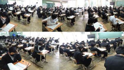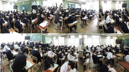 本日17日(火),中間テスト2日目の様子です。各学年,各教科の問題に真剣に取り組んでいました。今回のテストの反省をしっかり行って,6月に行われる期末テストに向けて頑張ってください。