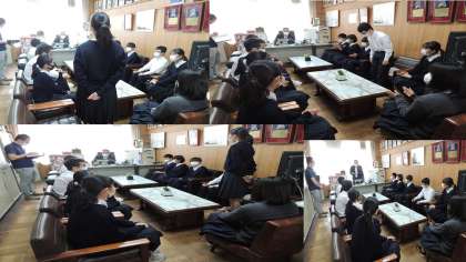 本日19日(木),昼休みの時間に校長室におきまして,生徒会本部役員と校長との「昼休みミーティング」を行いました。「各委員会の取組」について意見交換ができました。よりよい学校になるように,生徒会本部が中心に一致団結して様々な行事に取り組んでいきましょう!