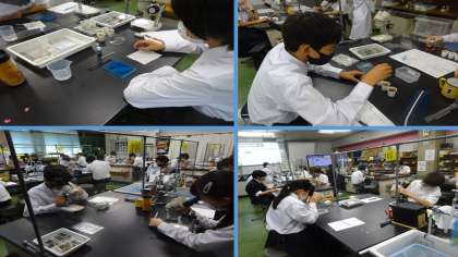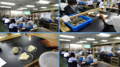 本日7日(火),1年6組・1年7組が午後から科学センター学習に行ってきました。学習内容は,生物「調べなくっチャ」,地学「発見!こんなところに石灰岩」でした。各クラスとも一生懸命学習していました。