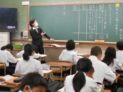 教育実習の集大成として研究授業を行います。本日は、3人の実習生が3週間で培った授業を実践してくれました。最初の授業よりも格段に上達し頑張ってくれました。残りの授業も、今日のような最高の授業を、生徒によろしくお願いします。お疲れ様でした。