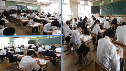 本日21日(水)は「2学期中間テスト」1日目です。みんな一生懸命,問題に取り組んでいました。明日は最終日となります。最後まで頑張ってください!2日目のテストの時間割は次の通りです。1,2組は授業を行います。