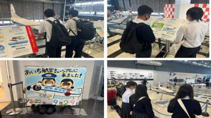 あいち航空ミュージアムでは、5・6・7組が見学しています。本物の飛行機やヘリコプターの大きさに大興奮。1・2組のメンバーも元気に勉強しています。