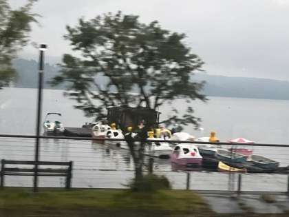 山中湖にやってきました。東名高速から富士五湖高速道路に入り、山中湖交流プラザきららに間もなく到着です。その後は、各ペンションに入ります。