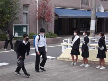 本日7日(月)、朝の登校の様子です。朝晩、本当に寒くなってきました。体調管理はしっかりしてください。今週金曜日に「合唱コンクール」が予定されています。各クラス頑張ってください!