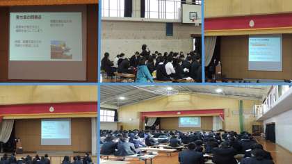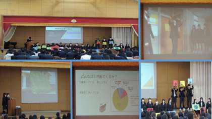 本日12日(月)5、6限に体育館におきまして、3年生の「総合的な学習の時間」発表会が行われ、各クラスの代表者が発表してくれました。「SDGs」に関する内容で、各クラスで調べた内容を一生懸命発表してくれました。お疲れさまでした。