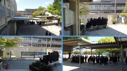 本日10日(月)、各クラスごとに学級写真の撮影が行われました。晴天のもと、校門付近での撮影でしたが、みんなしっかりと写真におさまっていました。みんなが一つになって素晴らしいクラスを作っていってください!!