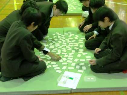 16日(月)に続き、今日は1年生の百人一首大会を実施しました。今日の読み手は、何と数学科の堀口先生です。前回の2年生に劣らず、1年生も大きな声を出して、”おはこ”の札を中心に取っていました。