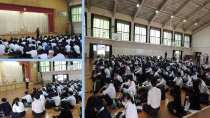 本日24日(水)5限、3年生はいよいよ明日からの「修学旅行」に向けて、最終の学活・集会を行いました。これまでの事前学習がいかされ、一生の思い出に残る実り多い「修学旅行」になることを願っています。明日は午前7時20分グラウンドに集合です。早い時間帯ですが、遅刻なく全員がそろって出発できるようにしましょう!そして、3年生全員の力で『S 3150(サイコー)で D ド派手な G グローバルな S chool trip』にして、楽しく実り多い「修学旅行」にしましょう!