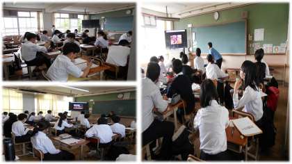 昨日は代休日の3年生が、本日から元気に登校しています。1時間目は、修学旅行の振り返りで、心に残っていることや友だちのいいところ発見を、感想として記入していました。修学旅行中のバスで見る予定だったVTRも見ることができ、楽しかった思い出を振り返っていました。