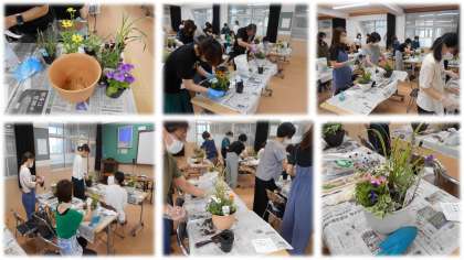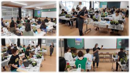 本日、PTA本部主催でガーデニング教室が行われました。伊藤花店様が講師で来ていただき、17名の参加者で和やかな時間を過ごしました。参加者は「家に飾れます!」と喜ばれていました。花で季節を感じれると素敵ですね。ご参加ありがとうございました。