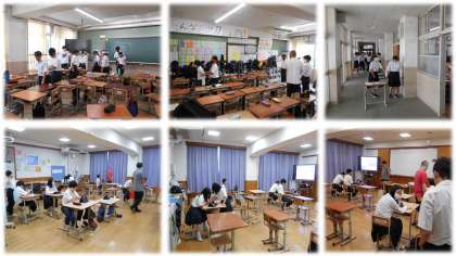 本日6時間目は、昨日に引き続き人権学習です。1時間目の学習に関連して、1年生は手引き体験を、2年生はヘイトスピーチについて、3年生は部落差別について、1、2組は差別について学習しました。みんなが幸せに生きる世の中になるためには、知っておく必要がある内容です。