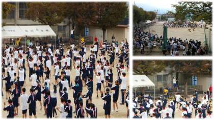 体育大会がスタートしました!開会式の様子です。生徒代表の言葉で始まり、校長先生のお話、そして選手宣誓です!全校でリズムに合わせて体操をして競技スタートです!!薄曇りのなか、暑すぎることはなく、グランドも最高のコンディションです怪我のないようにみんな頑張れ!!