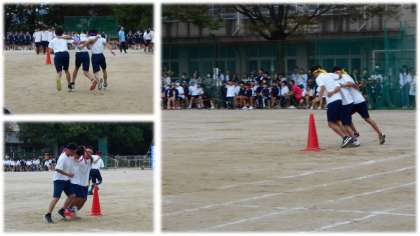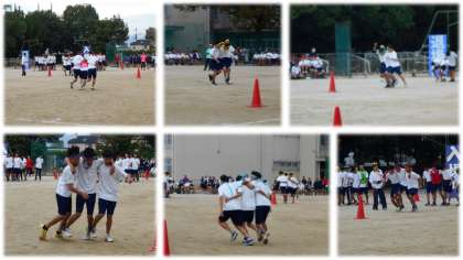 6種目目は、3年生男子の「3人3脚」でした。男子の3人3脚は本当に速い!まるで走っているようなトリオもいました。練習の成果が出ていました!