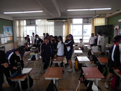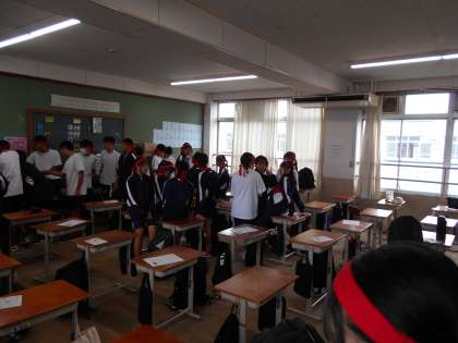 今年度は酷暑の夏でした。体育大会のプログラムを作ったときも残暑厳しく、プログラムに「クーリングタイム」を設定しました。本日はいらなかったかな?!教室で小休憩の様子です。