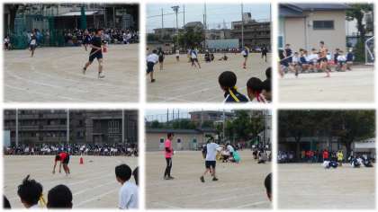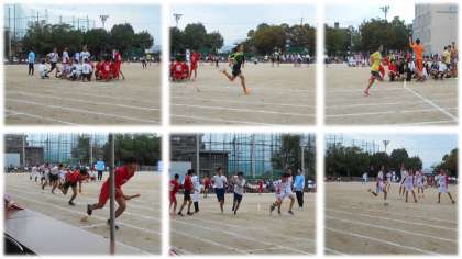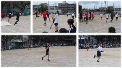 昼食休憩をはさみ、午後の部はリレーで盛り上がります。先ずは「部活動リレー」です。パフォーマンスの部と真剣勝負の部に分かれて、各部活動がエントリーしました。部活動のユニフォーム姿でリレーは、爽快でユニークです。水泳部は寒かったのでは!?美術部はどんなスケッチを描いていたのでしょうか?体操部、ナイス演技!!