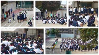 楽しかった体育大会もあっという間に閉会式です。各クラスの表彰、校長先生のお話、そして体育委員長からの最後の言葉がありました。優勝したクラスの皆さんおめでとうございます。よく頑張りました!校長先生からはクラス、学年の団結に感動したことを話されました。本当に素晴らしいことです!!体育委員長からは、見に来ていただいた保護者の皆様にもお礼がありました。そうです体育大会が無事に大盛況で終えることができましたのも、皆様のおかげです。これからも応援のほどよろしくお願いいたします。体育大会に参加された皆さん!本日はお疲れさまでした。