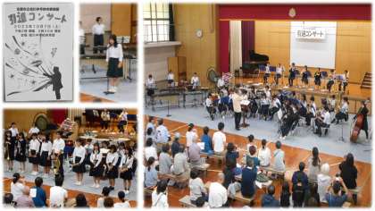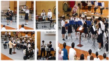 10月7日(土)午後、吹奏楽部の引退コンサートが本校体育館で開催されました。120人の観客の前で、10人の3年生が引退を迎えました。12曲とアンコールの全部で13曲が演奏されて、体育館は部活での練習やコンサートの集大成が披露されました。吹奏楽部の卒業生も、3年生の最後の演奏に駆けつけてくれました。3年生だけの演奏を聴いたとき,少しグッときました。3年間素敵な演奏をありがとうございました。そしてバトンは1、2年生に引き継がれました。吹奏楽部のさらなる発展を期待しています!!
