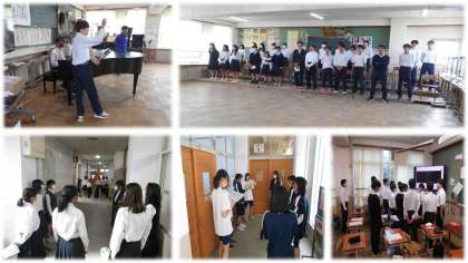 本日6時間目は、5回目の合唱練習です。本番まであと2週間となりました。今日はパート内での立ち位置や、本番の作法を確認しているクラスがありました。音楽室はピアノを使った練習ができる貴重な時間です。みんなの目も真剣です!!