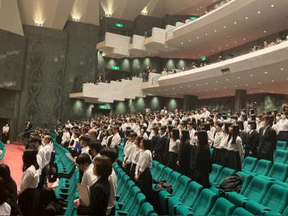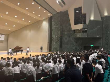 音楽の先生と学年主任の先生から合唱コンクールの講評をいただきました。最後に、本日のコンクールの締めくくりとして全校で合唱をしました。