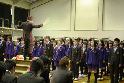 最初の発表は1年生です。3年生への思いを込めて、全員で群読のあと、「どんなときも」を合唱し、リコーダーで演奏しました。練習の成果が出て、素晴らしい出来栄えでした。ありがとう、1年生!