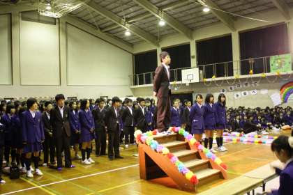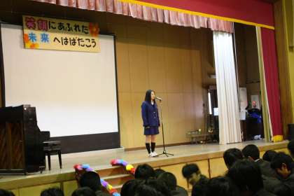 次は2年生です。代表のお礼の言葉の後、いきものががりの「歩いていこう」を合唱しました。感謝の思いを込めた演奏でした。ご苦労様、次は皆さんが桂川中の中心です!