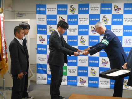 本校生徒が、西京警察署長より捜査協力の感謝状を表彰されました。地域への貢献は素晴らしいことです。ありがとうございまいた。