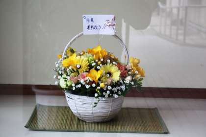 毎週玄関に生け花を飾っていただいている2名の方からの、卒業生への励ましの盛り花です。