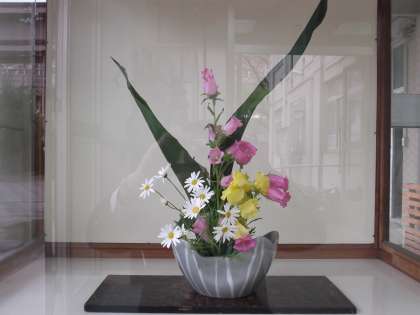 今週の生け花は、「マーガレット」「黄色のスイートピー」と、もうひとつピンク色の可愛い花です。土・日は陽射しも強くポカポカと暖かな日でしたが、今日は午後から気温が上がらず、肌寒く感じます。