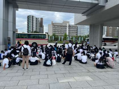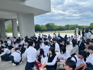 広島市内散策を終えて再集合しました。お土産をたくさん買っている生徒もいます。みんな元気そうで何よりです。これから、本日宿泊する「福山ニューキャッスルホテル」に向かいます。お土産を忘れないようにね!
