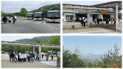 伊予灘SAに到着しました。いよかんで有名な伊予ですが、そうです四国に渡っていました。全長60キロメートルのしまなみ海道をすぎ、現在愛媛県にいます。トイレ休憩をして、ここでお弁当が配布されます。民泊先では入村式が予定されています。