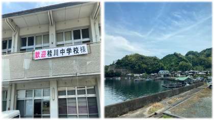 狩江地区の入村式の様子です。海あり畑ありの地域です。両方の体験ができるのかな?楽しみです。垂れ幕まで用意していただき歓迎していただきました。よろしくお願いいたします。