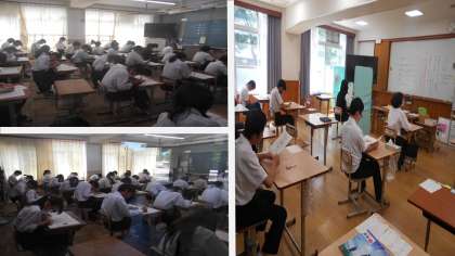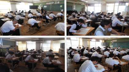 本日12日(水)は総括テスト2日目です。今日も、3教科の試験問題に真剣に取り組んでいました。いよいよ明日は最終日です。明日13日の総括テストの時間割は、