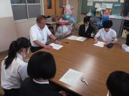 本日13日(木)テスト終了後、生徒会室におきまして、今年度2回目の生徒会本部役員と校長との「昼休みミーティング」を開催しました。今回は今月27日開催予定の「生徒総会」に向けて、各クラスからの要望について話し合いを持ちました。これからも生徒の皆さんと教職員一同が力を合わせ、よりよい桂川中学校をつくりあげていきましょう!!