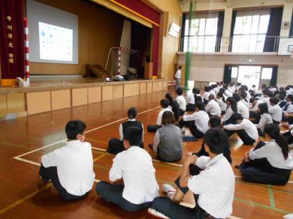 本日6時間目、3年生は体育館で「薬物乱用防止教室」を行いました。