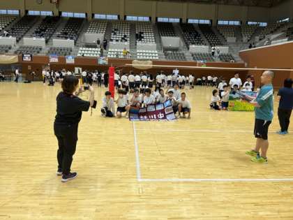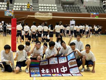 閉会式の後、みんなで記念撮影をしました。バレーボールは少し自信がついたので、来年に向かってまた練習することを誓いました。