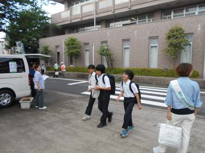 本日登校時に、地域の方により「社会を明るくする運動」のティッシュ配りが行われました。犯罪や非行のない地域社会を築くための全国的な運動です。「生徒さんは、しっかり挨拶をしてくれます。」とうれしい言葉をいただきました。「あいさつ」は社会を明るくする大切なコミュニケーションです。
