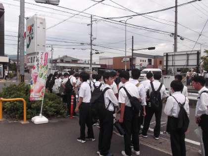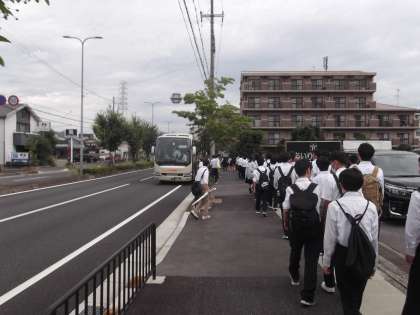 本日10日(水)、3年生は「大学見学」を行います。8時50分に京都産業大学に向けて出発しました。施設見学・体験や大学生との交流など素晴らしい内容がたくさんありますので、充実した1日にしてください。