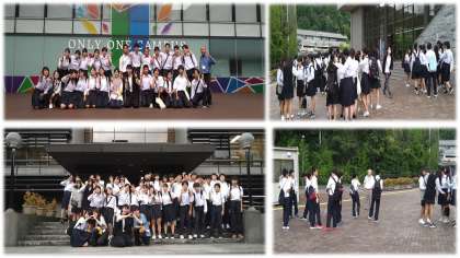 大学生との交流時間は、まるで大学の講義のようでした。大学教授からも説明があったようです。最後に大学生と記念撮影し、帰路についています。