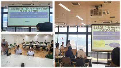 西京区の中学校・総合支援学校が、西京区役所庁舎に集合して、「西京支部生徒会交流会」を開催しました。西京区のテーマは「あいさつ」です。本校は、4Kあいさつ運動の報告と二学期から取り組むあいさつ運動について発表しました。その後、アイスブレイキングを担当し、自己紹介ゲームとジェスチャーゲームを運営しました。後半はこれからの「あいさつで地域などとつながる」をテーマに協議し、二学期からの生徒会活動に活かしていきたいと感じました。生徒会本部2名の生徒さん、お疲れさまでした!