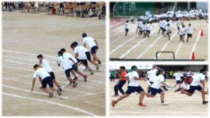 3年学年種目は、「全員リレー」です。クラス全員でバトンをつなぎ、速さだけでない技術がためされます。上手くつながりましたか?