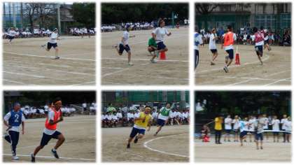 体育大会の花形「クラス対抗選抜リレー」です。各クラスの代表が学年1位を目指して頑張ります。3年生のリレーは本当に迫力があります!