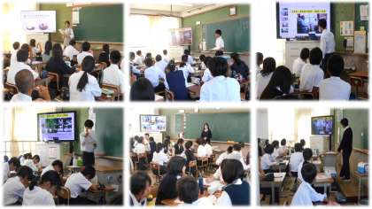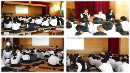 本日の道徳は、1・2年生の生徒会道徳です。生徒会本部の生徒が、各教室で服装や着こなしについての道徳を行いました。2年生は体育館で一斉に授業が行われました。全校アンケートの結果を教材として、グループで意見交流を行いました。自分たちの学校生活についてみんな真剣でした!生徒会本部生徒のコーディネートが素晴らしかったです!!
