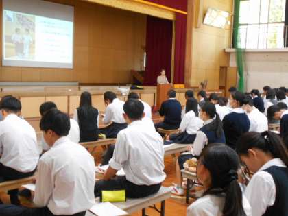 本日、3年生の4時間目は、「まぁいいかLaboきょうと」より講師の先生をお招きしてご講演を聞きました。だれ一人取り残さない社会を作るために、今自分の置かれている環境から一歩踏み出していくことが、社会を変えていくことの第一歩になります。先生の中学校時代の話を交えながらお話しをされました。