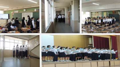 本日11日(金)6限、合唱コンクールに向けての取組です。体育館、各学年の廊下や各教室や音楽室から合唱の声が響いています。これからの練習が大切になってきますので、各クラスの目標に向かって頑張ってください!