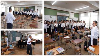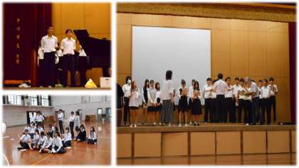 今週最後の合唱練習です。並び方を入念に確かめています。いい合唱になるように各クラス様々な工夫をしています。クラスアピールする生徒もタイミングや立ち位置を確認しています。