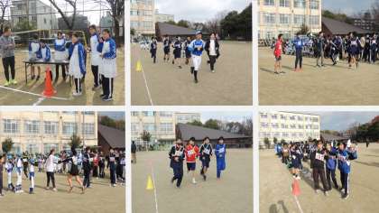 本日12日(日)午前、川岡東小学校にて「第40回新春ジョギング大会」が開催されました。開会式司会やタイム記録等は生徒会本部役員が行ってくれました。本番のタスキリレーには体操部・陸上部・卓球部・野球部等が参加し、頑張って走ってくれていました。最後にダイコンをプレゼントとしていただきました。楽しい時間を地域の方々とともに過ごすことができ本当によかったと思います。ありがとうございました。