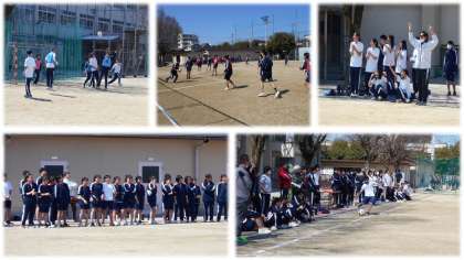 本日の3・4時間目は、3年生の球技大会でした。快晴で体を動かすには最高の陽気です。3年生は、歓声を上げながらサッカーを楽しみました。入試勉強を吹き飛ばす元気な姿を見ることができました!