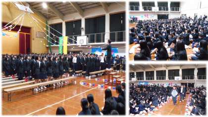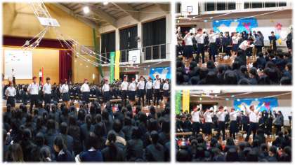 3年生は、後輩たちにエールを送ってくれました。このために結成された応援団、迫力があり気持ちがこもったパフォーマンスでした。そして「群青」、3年生の歌声が体育館に響くと、会場は感動に包まれました。桂川中生は最高の送る会を作ってくれました。3年生、本当にありがとう!1・2年生、すばらしい発表でした!!