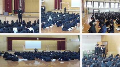 1年生に続いて、2年の学年集会が行われました。2年生は、各先生方からのお話で1年間の締めくくりをしました。みんなと過ごしたかけがえのない1年間、先生方のお話から2年生の成長が伺えました。さあ、4月には最高学年です。先日卒業した3年生に負けないぐらい、素敵な3年生になってください。期待しています!