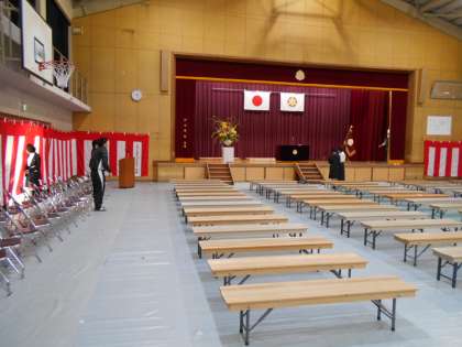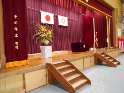始業式後は、入学式の準備です。式場となる体育館を新3年生が、渡り廊下や玄関周辺を新2年生が、心を込めて準備をしてくれました。午後にはステージ花がセットされ、新入生代表が作法の確認に来てくれました。いよいよ明日は入学式です。一つ先輩になった在校生も、新体制になった教職員も新入生を楽しみに待っています。明日の天気予報は、快晴です!